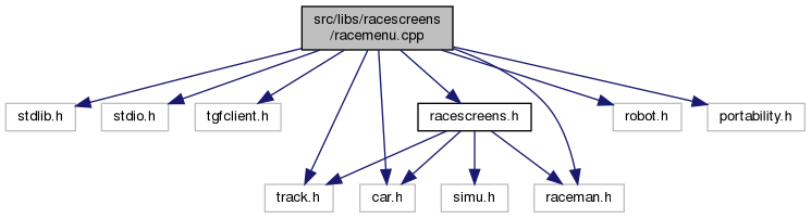 #include <stdlib.h>#include <stdio.h>#include <tgfclient.h>#include <track.h>#include <car.h>#include <raceman.h>#include <robot.h>#include <racescreens.h>#include <portability.h>