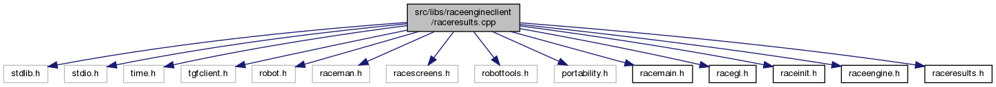 #include <stdlib.h>#include <stdio.h>#include <time.h>#include <tgfclient.h>#include <robot.h>#include <raceman.h>#include <racescreens.h>#include <robottools.h>#include <portability.h>#include "racemain.h"#include "racegl.h"#include "raceinit.h"#include "raceengine.h"#include "raceresults.h"